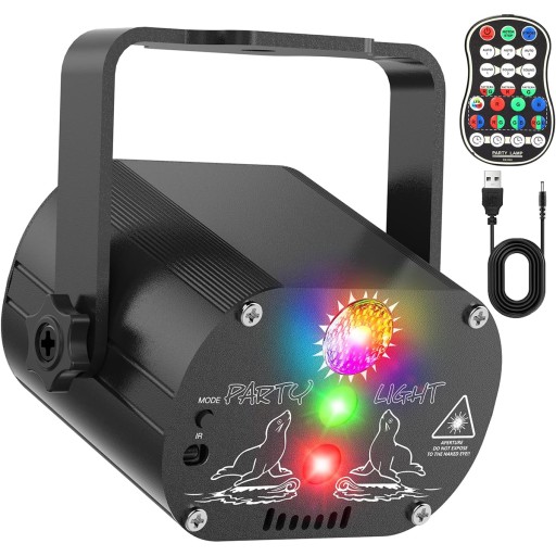 🌠Kula dyskotekowa DJ-a ma czerwone i zielone światła główne oraz czerwone, zielone i niebieskie światła LED w tle. Zapewnia 60 różnych trybów disco i 7 trybów pracy (tryb auto 1/2/3, tryb flash, tryb muzyczny 1/2/3). Różne kombinacje mogą zapewnić urzekające pokazy świetlne.