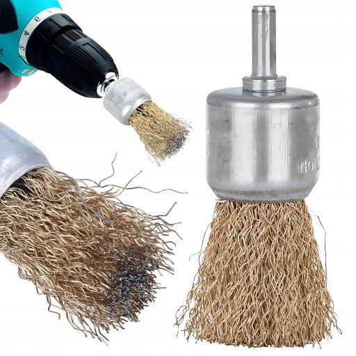 SZCZOTKA DRUCIANA NA WIERTARKĘ 24mm PĘDZELKOWA MOSIĘŻNA DRUT FALISTY