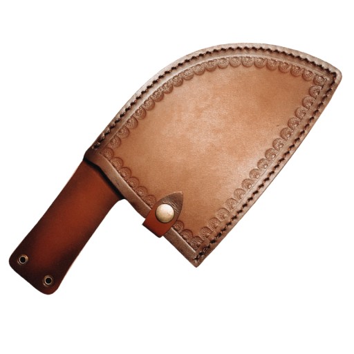 W komplecie znajduje się elegancki, skórzany pokrowiec, który ułatwia bezpieczne przechowywanie i wygodny transport tasaka.