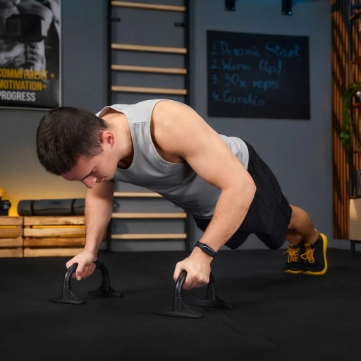 Uchwyty do pompek pozwalają na głębsze i bardziej efektywne wykonywanie różnych wariantów pompek i wszechstronnie rozwijają mięśnie klatki piersiowej.