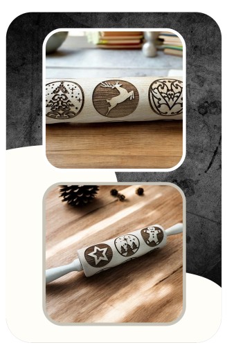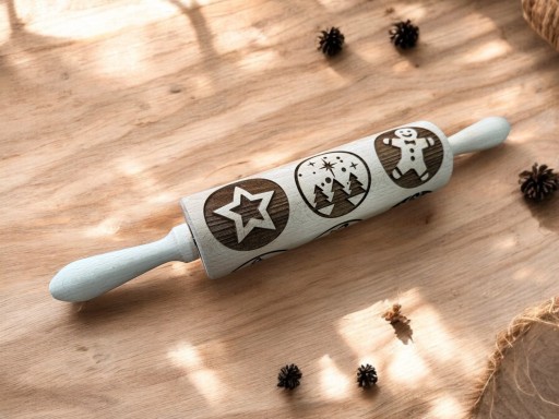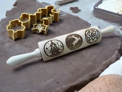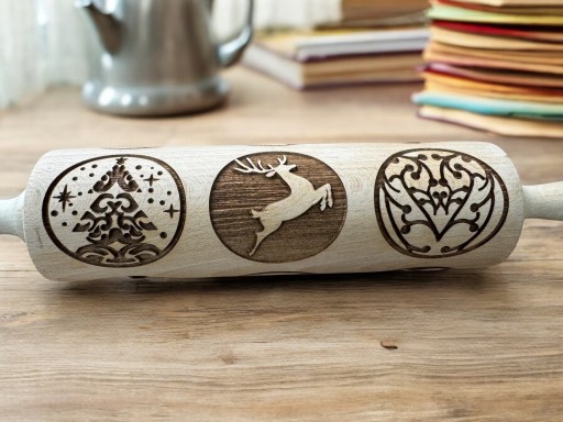 ДЕРЕВЯННЫЙ РОЖДЕСТВЕНСКИЙ ВАЛЕЦ ДЛЯ Впечатления УЗОРАМИ НА ПЕЧЕНЬЕ, С ГРАВИРОВКОЙ