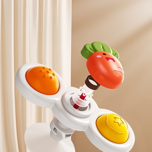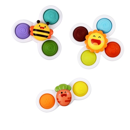 - 3 sztuki fidget spinnerów pop up z przyssawką (Marchewka, Pszczółka, Słoneczko)