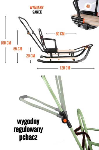 Regulowany pchacz - można dopasować do wzrostu osoby prowadzącej sanki