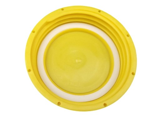 Oryginalna, żółta nakrętka wraz z uszczelką do zbiorników marki Comet z szerokim wlewem DIN 96 o pojemnościach np. 12 oraz 19l (dostępne w naszej ofercie).