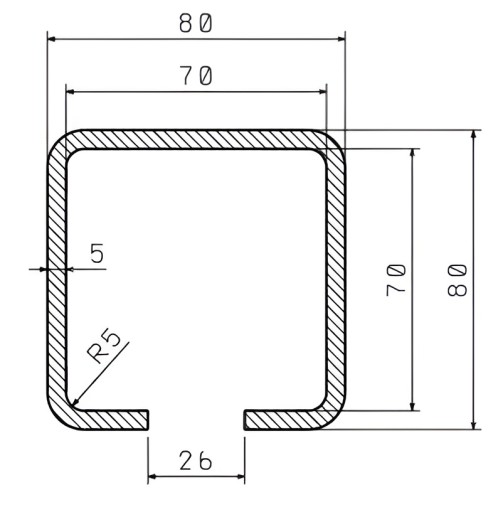 Aby dokonać prawidłowego wyboru należy sprawdzić wymiary zewnętrzne szyny, najczęściej stosowany profil "80x80" posiada wymiary 80x80x5, gdzie 5 to grubość ścianki.