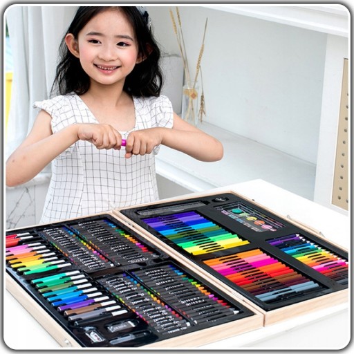 ✅ Zestaw artystyczny dla dziecka -180 elementów w solidnej drewnianej walizce!