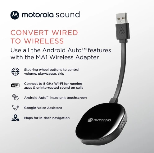 Zaprojektowany przez Google adapter bezprzewodowy MA1 jest pierwszym i jedynym na świecie adapterem bezprzewodowym Android Auto. Adapter wykorzystuje technologię mostkowania licencjonowaną przez Google, która umożliwia bezprzewodowe połączenie telefonu z systemem Android Auto w samochodzie. Wystarczy podłączyć adapter do portu USB i sparować go z telefonem za pośrednictwem Bluetooth 5.0 i nie musisz już męczyć się z kablami.