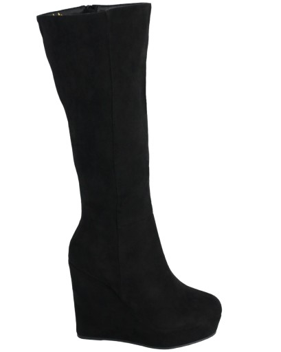 CZARNE KOZAKI NA KOTURNIE PLATFORMIE ZAMSZOWE BUTY DAMSKIE