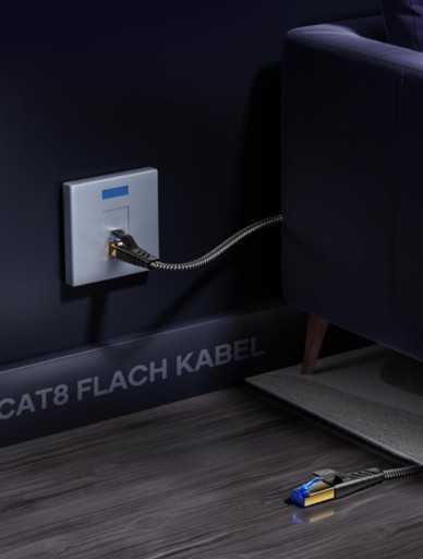 Kable Cat 8 rj45 są w płaskiej konstrukcji, aby uniknąć splątanych przewodów i zaoszczędzić miejsce.