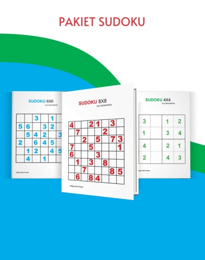Sudoku dla seniorów to 30 układanek. W dużym formacie co wpływa na łatwiejszą pracę z ćwiczeniami. Zadania są duże i przejrzyste tak by osoby starsze nie miały problemów z ich rozwiązywaniem. W opracowaniu pojawiają się nie tylko cyfry ale też figury geometryczne co pozwala na wprowadzenie różnorodności i nauki sudoku od podstaw dla tych użytkowników, którzy nie mieli z nim jeszcze do czynienia. Oczywiście można skopiować i wydrukować każdy kwadrat a zaletą tego pomysłu jest wykorzystanie figur geometrycznych i liter, nie tylko cyfr. Dostępne są 3 zeszyty do rozwiązywania.