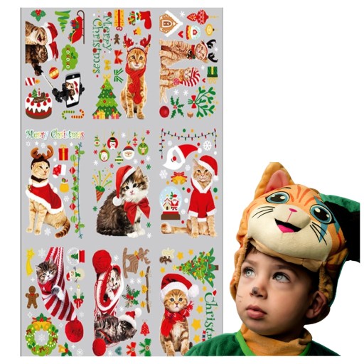 NAKLEJKI na OKNO ŚWIĄTECZNE KOTY DEKORACJA OKIENNA 135EL. dla DZIECI 9 ark.