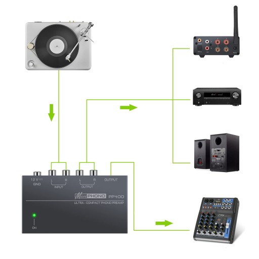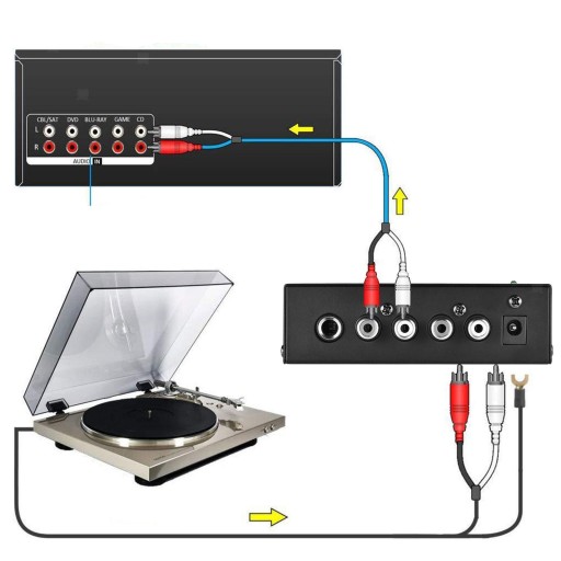 Łatwa funkcja Plug & Play: podłącz dowolny gramofon bez dedykowanego wejścia gramofonowego do nowoczesnych urządzeń dźwiękowych, aby wzmocnić muzykę. Wystarczy podłączyć przedwzmacniacz do gramofonu i urządzenia audio, aby móc cieszyć się płytą winylową w mgnieniu oka.