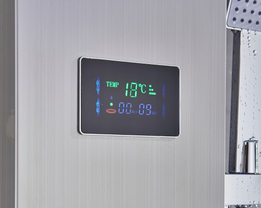 Panel prysznicowy wyposażony jest w inteligentny wyświetlacz LCD, który pozwala na łatwe monitorowanie: