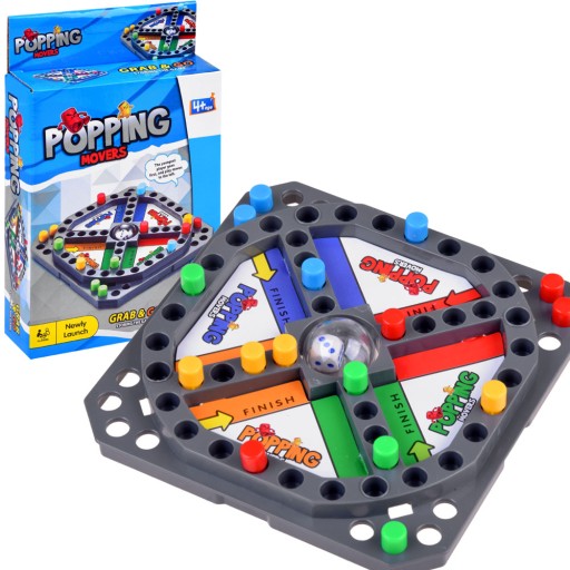 Gra rodzinna Mini Chińczyk wersja podróżna to propozycja dla wszystkich dzieci, które uwielbiają gry planszowe. Zestaw składa się z zamykanej planszy i 16 pionków do gry w czterech kolorach: zielonym, żółtym, niebieskim i czerwonym. Na środku planszy znajduje się kopuła z kostką go gry. Wystarczy wcisnąć kopułkę, wtedy kostka podskoczy i pokaże liczbę wylosowanych oczek.