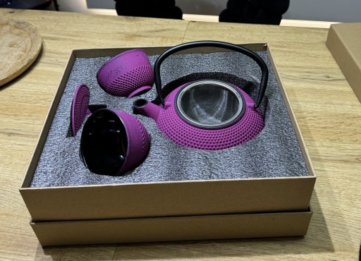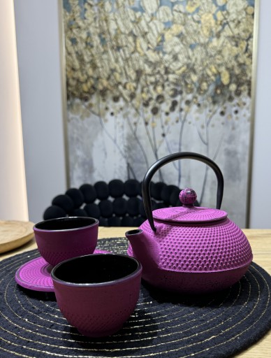 CZAJNIK żeliwny zaparzacz do herbaty Imbryk 0,8l Podkładka +2 Czarki 100ml
