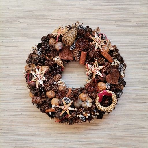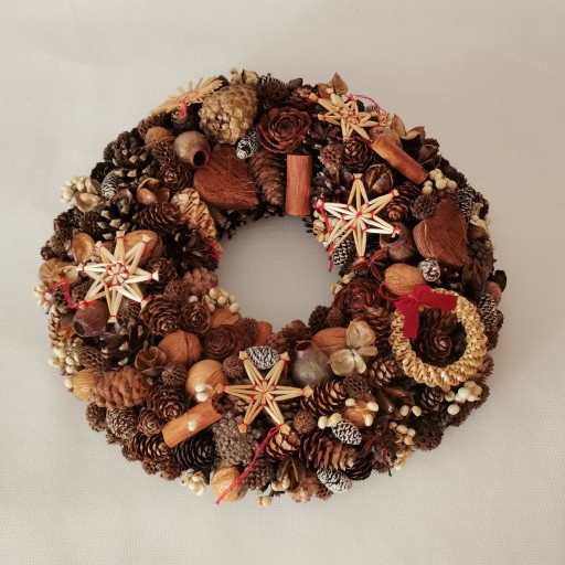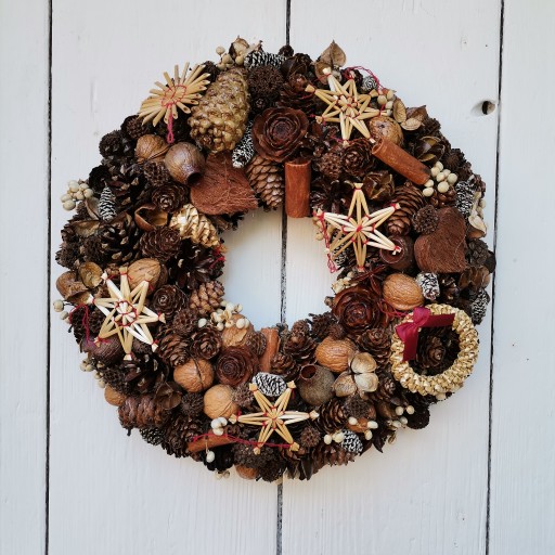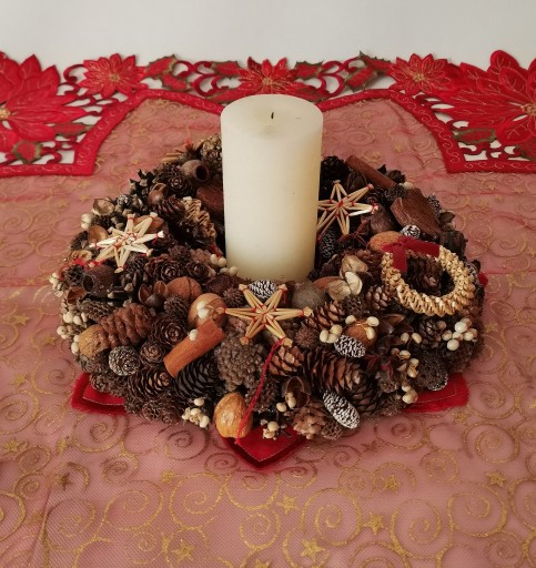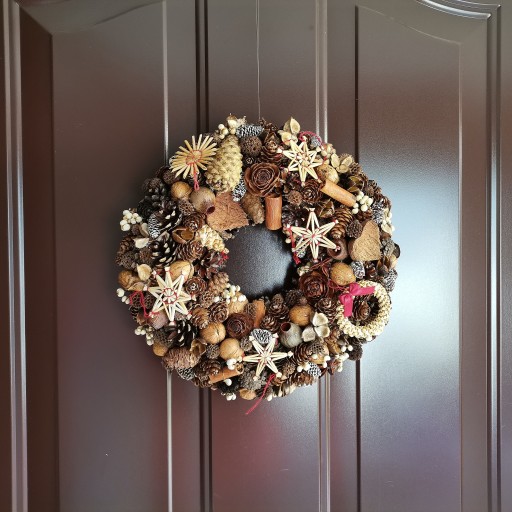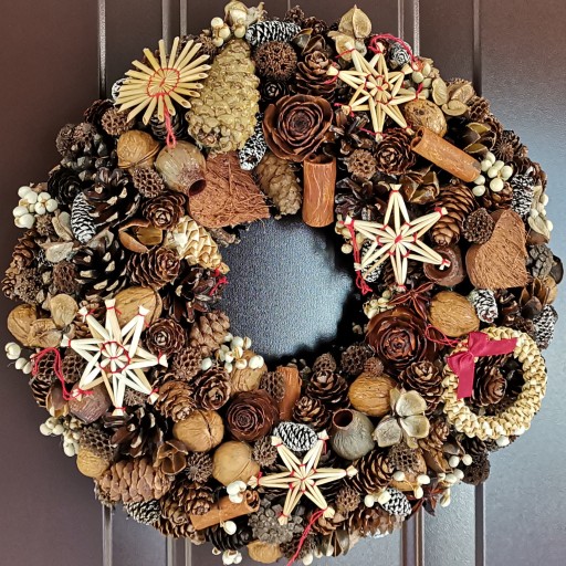 Prezentujemy Państwu w całości własnoręcznie wykonane wianki bożonarodzeniowe w wielu typowo świątecznych kolorach, ozdabiane dużą ilością różnego rodzaju szyszek, naturalnymi dodatkami jak orzechy, cynamon, suszone owoce, zielonymi gałązkami oraz akcesoriami florystycznymi i bombkami.