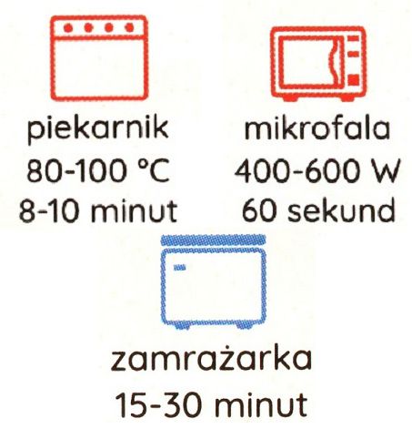 - piekarniku (80 - 100 °/ około 8-10 min.) lub na innym źródle ciepła np. grzejnik.