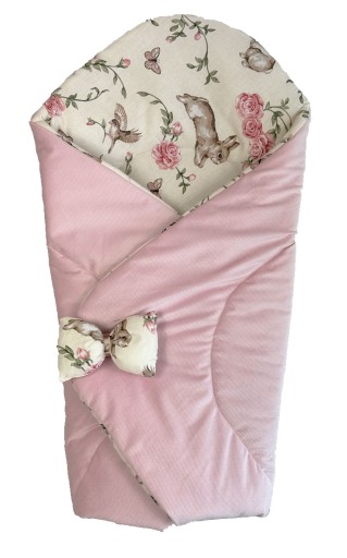 Rożek jest dwustronny - z jednej strony delikatny materiał velvet, z drugiej strony bawełna z przepięknym wzorem. Rożek można obrócić na drugą stronę, tak aby wzór był na zewnętrznej stronie a delikatny wafel wewnątrz.