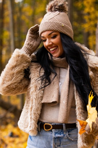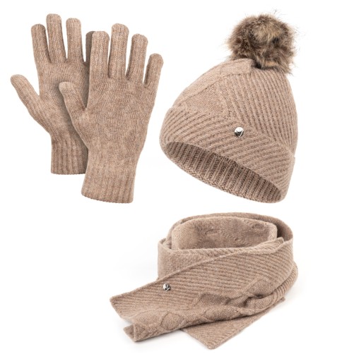 Czapka, szal jak i rękawiczki wykonane zostały z najwyższej jakości materiałów z dbałością o szczegóły.