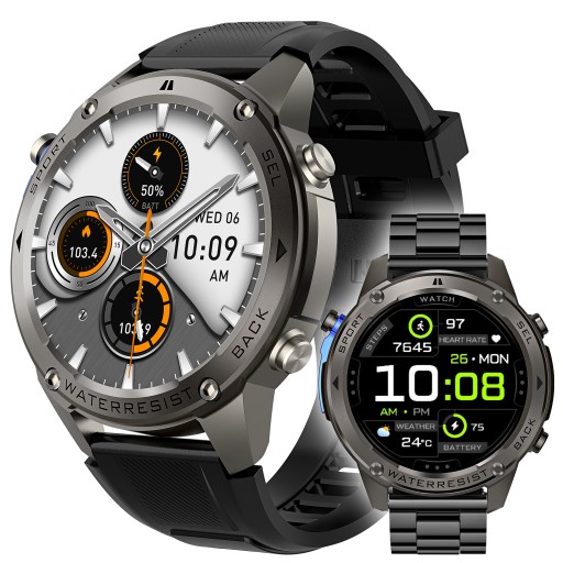 Obudowa smartwatcha z wysokiej jakości stali nierdzewnej 316L zapewnia trwałość, odporność na korozję i wytrzymałość w trudnych warunkach. Zegarek posiada certyfikat IP69K, gwarantujący wodoodporność 5ATM oraz pyłoszczelność.