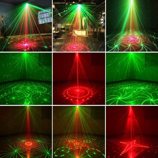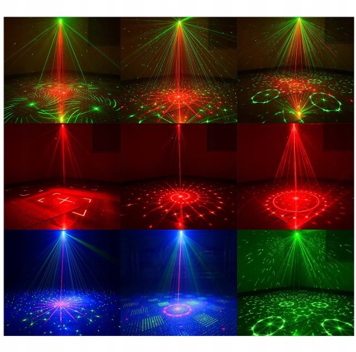 - -Wielofunkcyjne oświetlenie imprezowe: Światło stroboskopowe ma 8 soczewek źródłowych (czerwony i zielony oraz podświetlenie LED), 240 wzorów, zmienia kolor i prędkość w zależności od rytmu dźwięku/muzyki.Niesamowite połączenie sprawia, że noc staje się bardziej kolorowa.