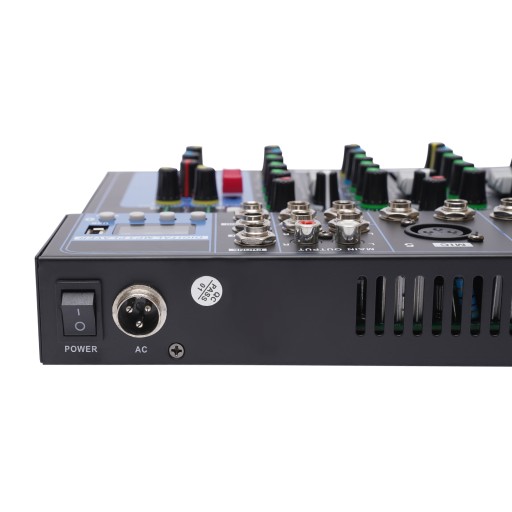- Delikatna jakość dźwięku: Posiada pięć wejść monofonicznych mikrofonów/kanałów liniowych i jeden zestaw wejść stereo, a każdy kanał mono ma 3 zbalansowane segmenty do niezależnej regulacji dźwięku średniego, wysokiego i niskiego, tworząc bardziej kompaktowy efekt pogłosu i delikatną jakość dźwięku.