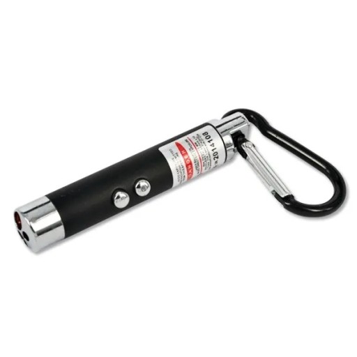 Z laserem dostaniesz również karabińczyk, który pozwoli przyczepić Ci laser na przykład do kluczy lub spodni.