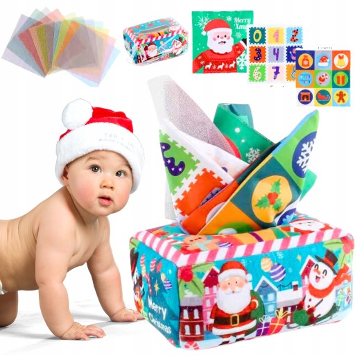 Sorter sensoryczny w formie pudełeczka z chusteczkami to doskonała zabawka edukacyjna dla maluchów, która stymuluje ich zmysły i rozwija umiejętności motoryczne. Kolorowe elementy przyciągają uwagę dziecka, a świąteczny motyw nadaje zabawce wyjątkowego, sezonowego charakteru. Dzięki szeleszczącym chusteczkom, sorter dostarcza dodatkowych wrażeń dotykowych i słuchowych, które wzbogacają doświadczenia sensoryczne malucha. Zabawa sorterem pomaga dzieciom w nauce chwytania, rozpoznawania tekstur oraz rozwija koordynację ręka-oko. To świetny pomysł na prezent, który łączy naukę z zabawą i wspiera rozwój dziecka w przyjemny, angażujący sposób.