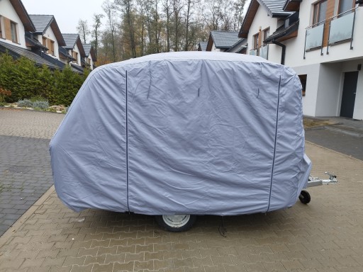 Pokrowiec bardzo dobrze dopasowuje się i przylega do przyczepy kempingowej.