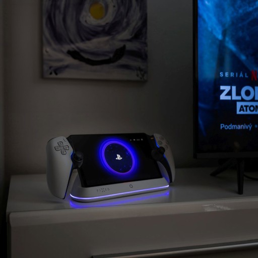 Stacja ładująca FIXED dla PlayStation Portal umożliwia błyskawiczne i bezproblemowe ładowanie Twojego kontrolera. Wystarczy jeden ruch, aby adapter USB-C połączył się z pinami, a ładowanie rozpoczęło się natychmiast. Podświetlany wskaźnik LED informuje, kiedy kontroler jest gotowy do ponownego użytku.