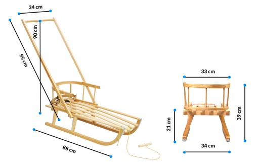 ⛄Wymiary sanek: długość 88 cm, szerokość 34 cm, wysokość całkowita 39 cm
