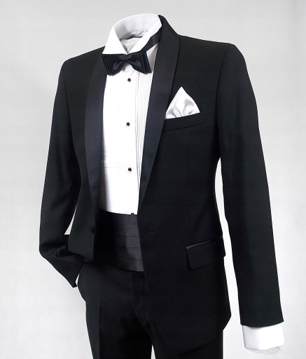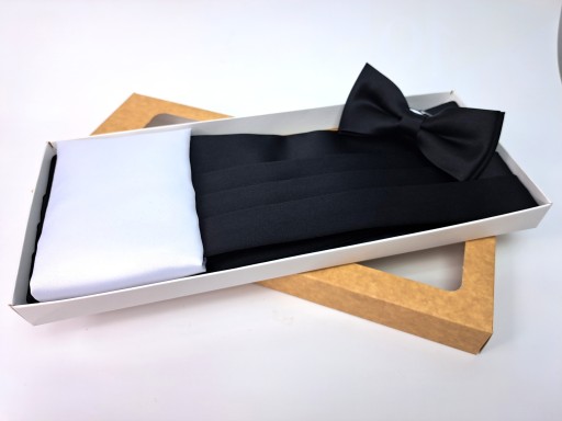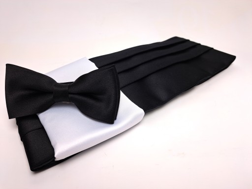 CZARNY PAS SMOKINGOWY TYP HISZPAŃSKI Z PLISAMI , MUCHA , POSZETKA