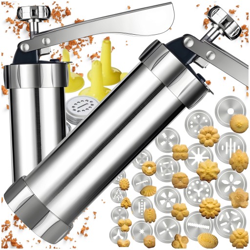 Oferujemy wielofunkcyjną praskę do ciastek i dekorator tortów, idealną dla każdego miłośnika wypieków! Dzięki niej przygotujesz nie tylko piękne i równe ciasteczka, ale także stworzysz efektowne dekoracje na torty, babeczki i inne wypieki.