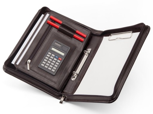 - wewnątrz kalkulator i miejsce na długopisy (kartki i ołówki nie są elementem wyposażenia)