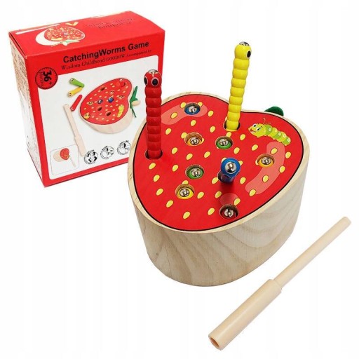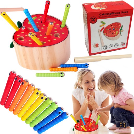 GRA ZŁAP ROBACZKA DREWNO WYCIĄGNIJ ROBAKA MAGNETYCZNA DREWNIANA DLA DZIECI