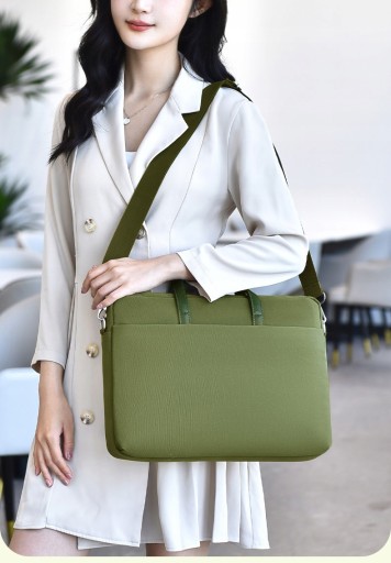 DAMSKA TORBA NA LAPTOPA 15 CALI ZIELONA CZARNA NA RAMIĘ DO RĘKI BIZNESOWA