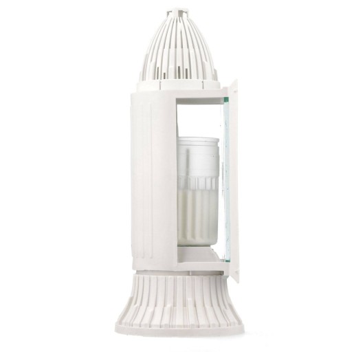 - Podstawka, korpus i komin są wykonane z plastiku w kolorze białym
