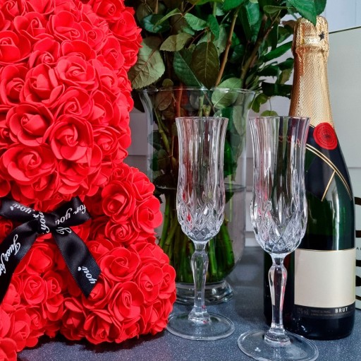 Amazing looking, in transparent packaging, it can be additionally covered with rose petals. The effect unpacked, in a romantic setting, will be a great souvenir for photos and videos of important occasions.