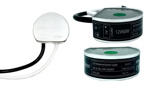 Zasilacz LED dopuszkowy 12V DC o mocy 60W, przeznaczony do montażu w puszce instalacyjnej FI60 mm. Jest to zasilacz stałonapięciowy, idealny do pracy z oświetleniem LED i innymi urządzeniami wymagającymi stałego napięcia 12V DC. Nasz produkt, jako jeden z nielicznych, mieści się w standardowej puszce FI60 mm, choć na styk. Dla wygodniejszego montażu i lepszego chłodzenia zalecamy instalację w puszkach o nieco większej średnicy lub w puszkach z kieszonką.