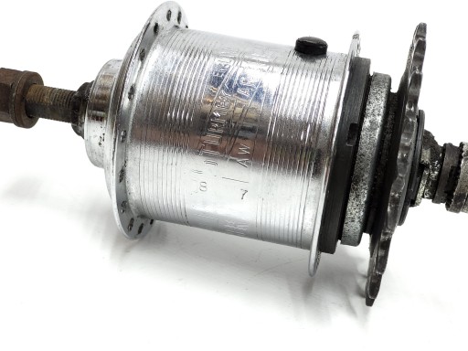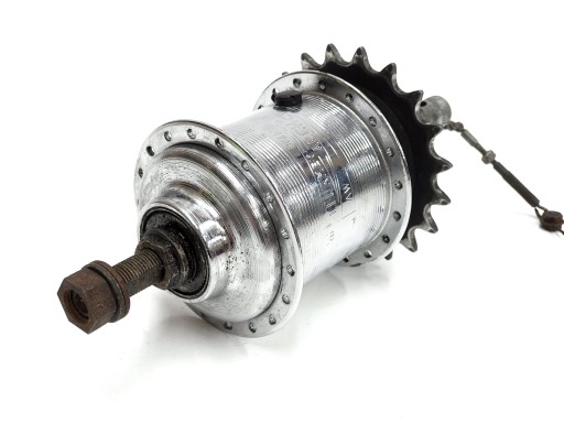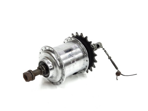 Piasta 3 biegowa Sturmey Archer do rowerów Romet Universal Tyler itp. z PRL. Dedykowana do kół 36 szprych, sprawna w zestawie z łańcuszkiem.