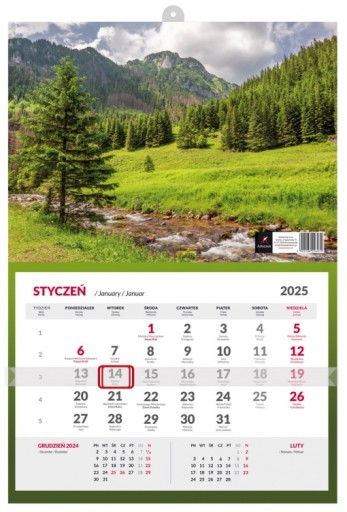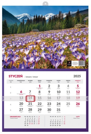 - układ: miesięczne kalendarium i miniatury 2 miesięcy