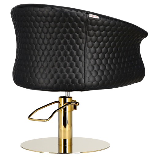 Fotel charakteryzuje się eleganckim i ergonomicznym designem, który pozwala na wygodną pracę fryzjera oraz relaks klientów.