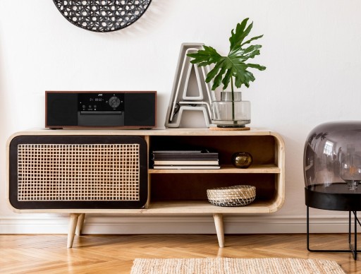 Wykonana z drewna obudowa JVC RD-E761 nadaje urządzeniu elegancki i klasyczny wygląd, który doskonale wpasowuje się w każde wnętrze. Połączenie naturalnego drewna z nowoczesnymi czarnymi akcentami sprawia, że system audio prezentuje się stylowo i ponadczasowo.
