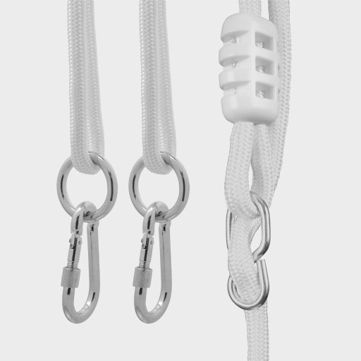 Huśtawka trafia do Ciebie prawie w całości złożona. Wystarczy tylko dopasować długość lin i zawiesić na przygotowanym haku czy belce. 2 karabińczyki w zestawie ułatwiają montaż.