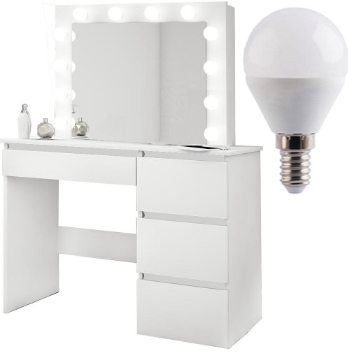 Poczuj się jak gwiazda Hollywood dzięki DEDYKOWANEMU i niepowtarzalnemu oświetleniu lustra. Lustro oświetlone jest aż 12 żarówkami LED wkręconymi w obudowę toaletki
