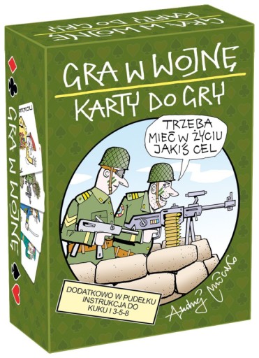Wojna to jedna z najstarszych gier karcianych na świecie! Zasady gry opisane są w zwięzłej, kolorowej instrukcji, a wysokiej jakości karty, ilustrowane rysunkami Andrzeja Mleczki, dopełniają całości. Cechy gry: Proste reguły! Dynamiczna rozgrywka! Humorystyczne obrazki! Mnóstwo śmiechu gwarantowane! Dodatkowo w pudełku znajduje się instrukcja do Kuki i 3-5-8!