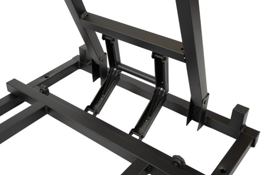 - Cechy stelaża: mocne spawy, wytrzymały i stabilny, możliwość składania za pomocą specjalnego systemu sprężynowego dzięki czemu nogi składane są pod blat
