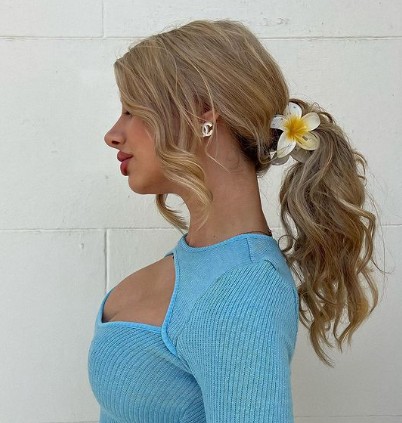 Klamra hibiskus spinka do włosów duża kwiat kwiatek boho hawajska turkus