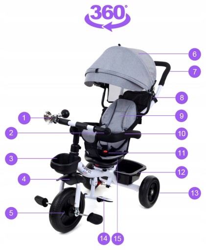 ✔️Obracane siedzisko 360°: Łatwa zmiana pozycji twarzą do rodzica lub przodem do jazdy.