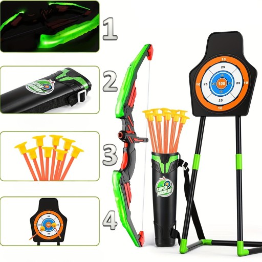 Łuk dla Dzieci Tarcza Strzały Zestaw Strzelecki LED Kołczan Zestaw